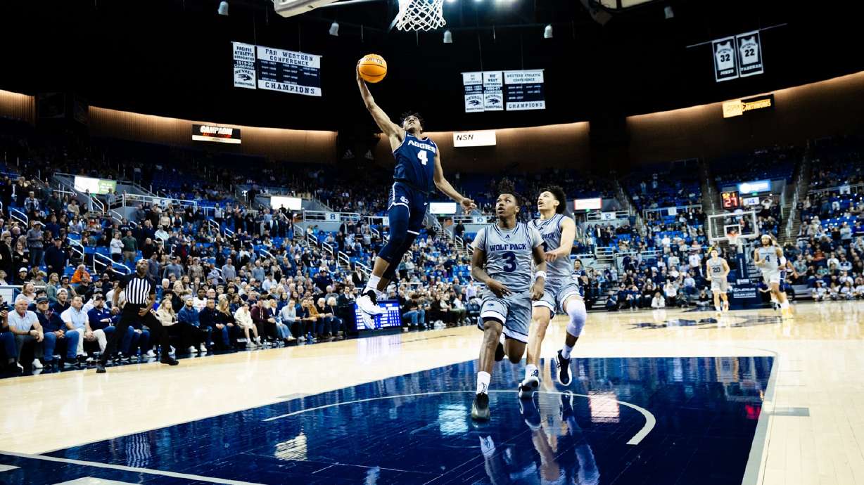 The Aggies led 50-46 with about eight minutes left within the second half, and that is when Martinez scored the subsequent 17 factors for Utah State, together with a 3-pointer that pushed its result in 5 with lower than two minutes remaining and two necessary free throws with 12 seconds left.